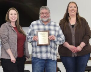 Volunteer of the Year, Scott Nellis, receives his award at AEOA’s volunteer hall of fame awards ceremony in Virginia on Friday, Dec. 19. AEOA Volunteer Services and Food Access Manager, Carrie Pellinen (left) and Volunteer Services and Groceries to Go Coordinator, Nicole Mellesmoen (right) presented awards.