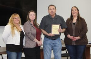 Quad City Food Shelf Manager Karl Oberstar Jr. accepted the Station of the Year award at AEOA’s 2025 Hall of Fame Awards celebration on Friday, Dec. 19. Pictured with Oberstar are AEOA Visitor Services staff (left to right) Heather Hanson, Carrie Pellinen and Nicole Mellesmoen.