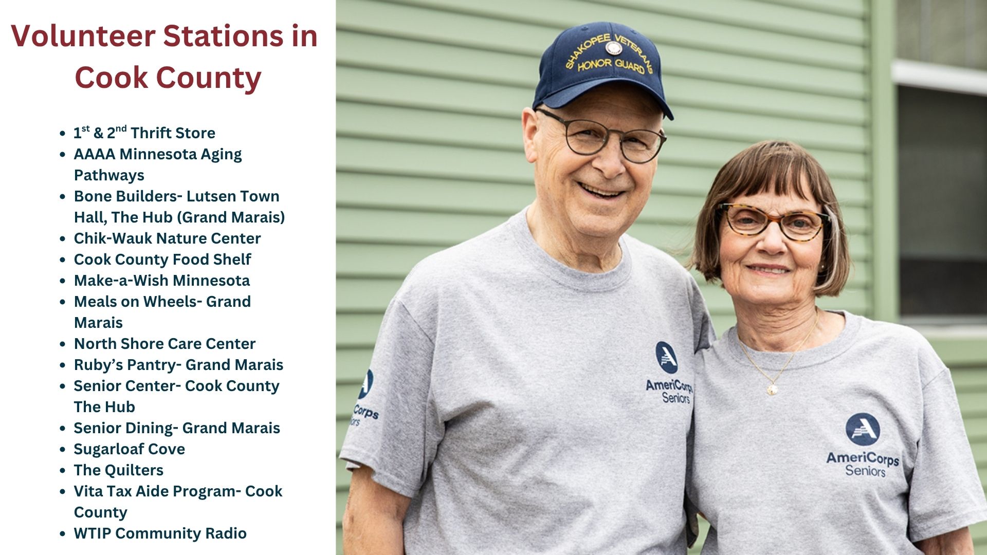 Arrowhead RSVP is part of AmeriCorps Seniors and sponsored by AEOA. Funding is provided by the Corporation for National and Community Service: the Minnesota Board on Aging; St. Louis, Lake and Cook Counties.